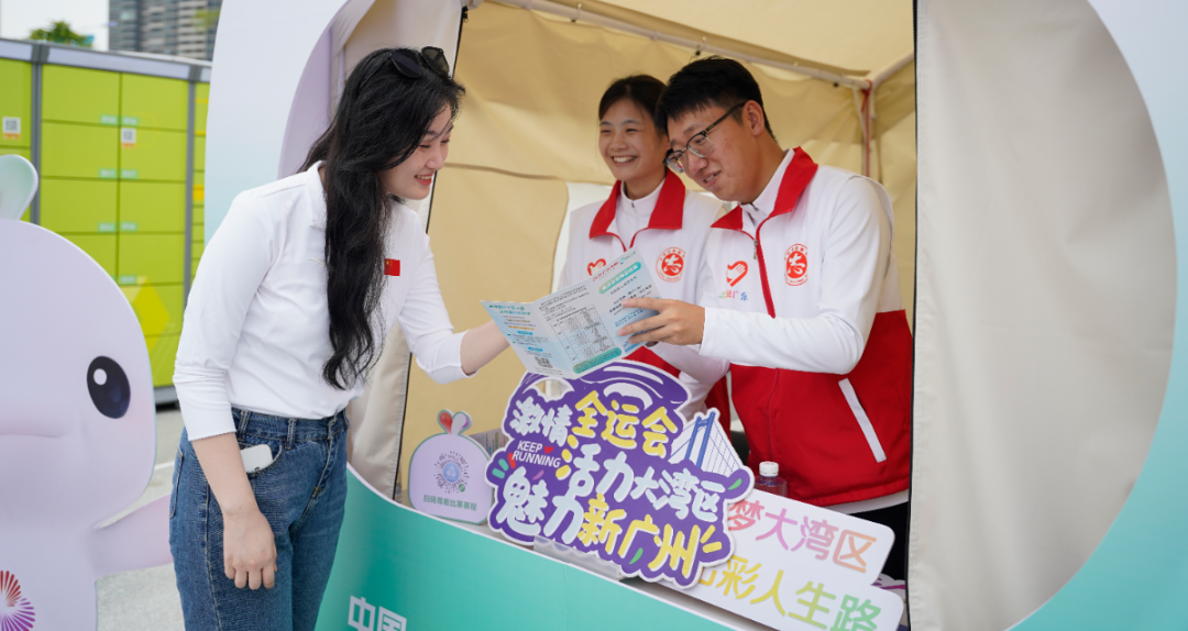 驿站内,饮用水、急救包、赛事日程与旅游指南等便民物资一应俱全,志愿者为市民与游客提供赛事咨询、交通指引、旅游推荐等多元化服务,成为展示南沙城市形象的“第一窗口”。