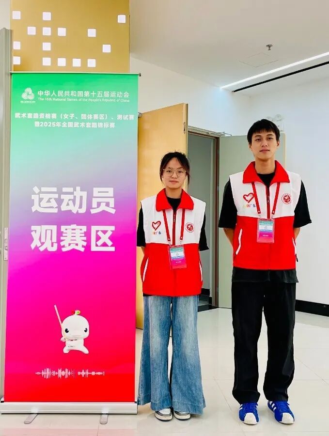 今年5月,第十五届全国运动会武术套路资格赛(女子、团体赛区)、测试赛暨2025年全国武术套路锦标赛率先举行,来自广州职业技术大学的42名青年志愿者作为“先行部队”,在嘉宾接待、观众引导、反兴奋剂检测等岗位上累计服务1127小时,实现“零差错”运行,为正赛志愿服务积累了宝贵经验。